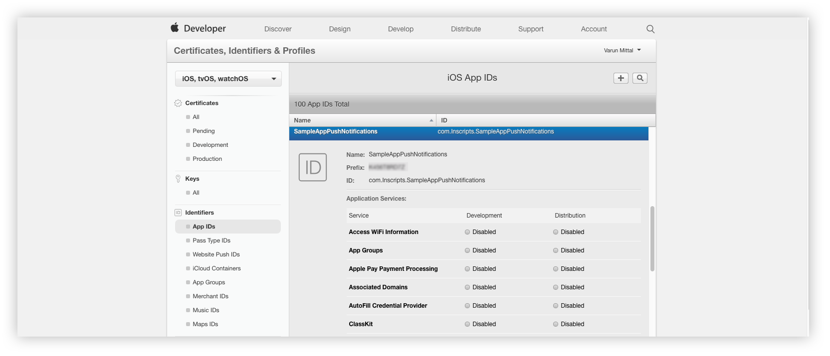 - Go to Certificates, Identifiers & Profiles. In the Identifiers > App IDs and select the Push Notifications service under Application Services