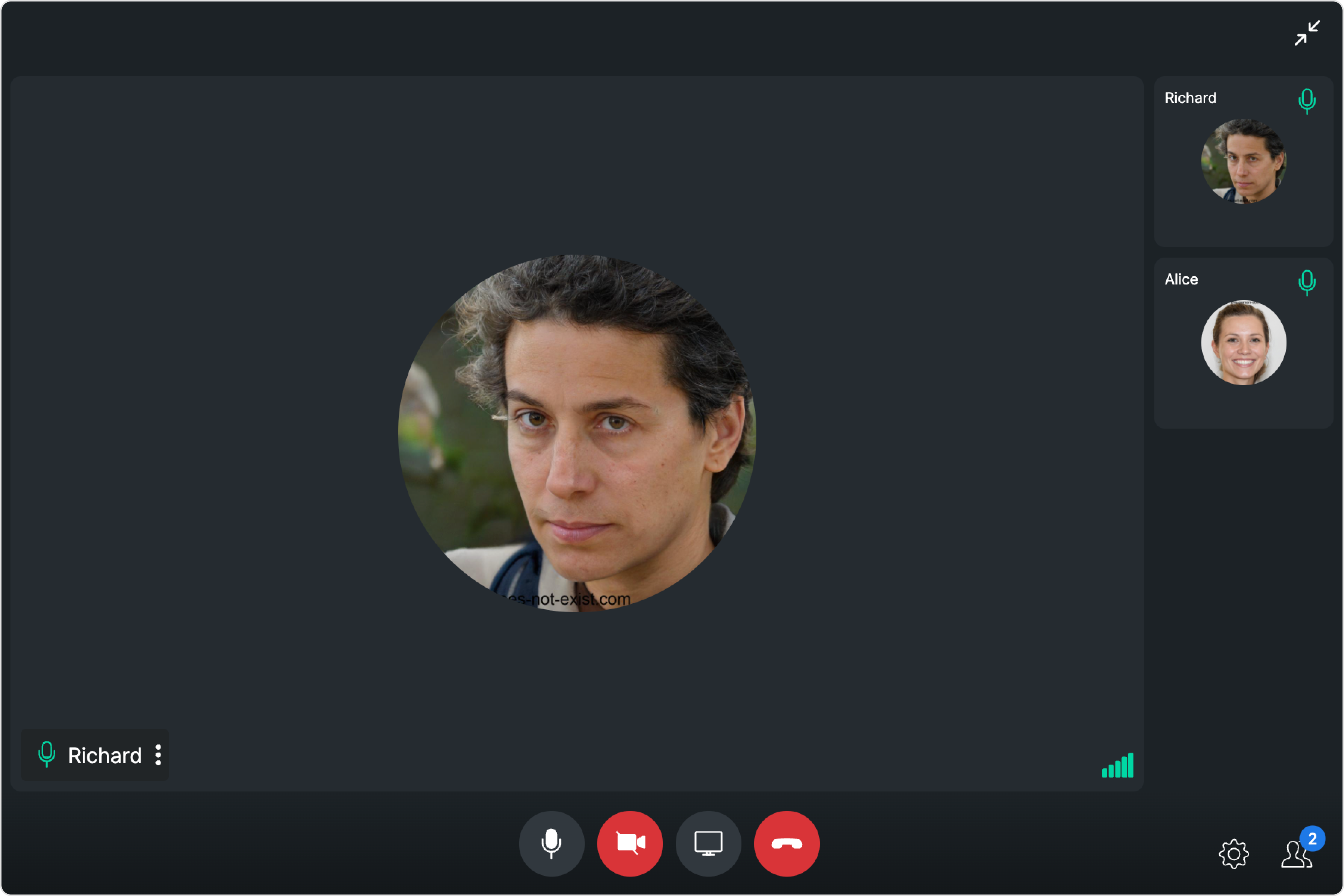 The OngoingCall component is the user interface that displays during an ongoing call. For an audio call, this screen displays the participant’s name, call duration, and buttons to mute the audio, enable or disable video, switch the camera, and end the call. For a video call, the Call Screen might additionally display the video footage from both the user’s camera and the recipient’s camera.