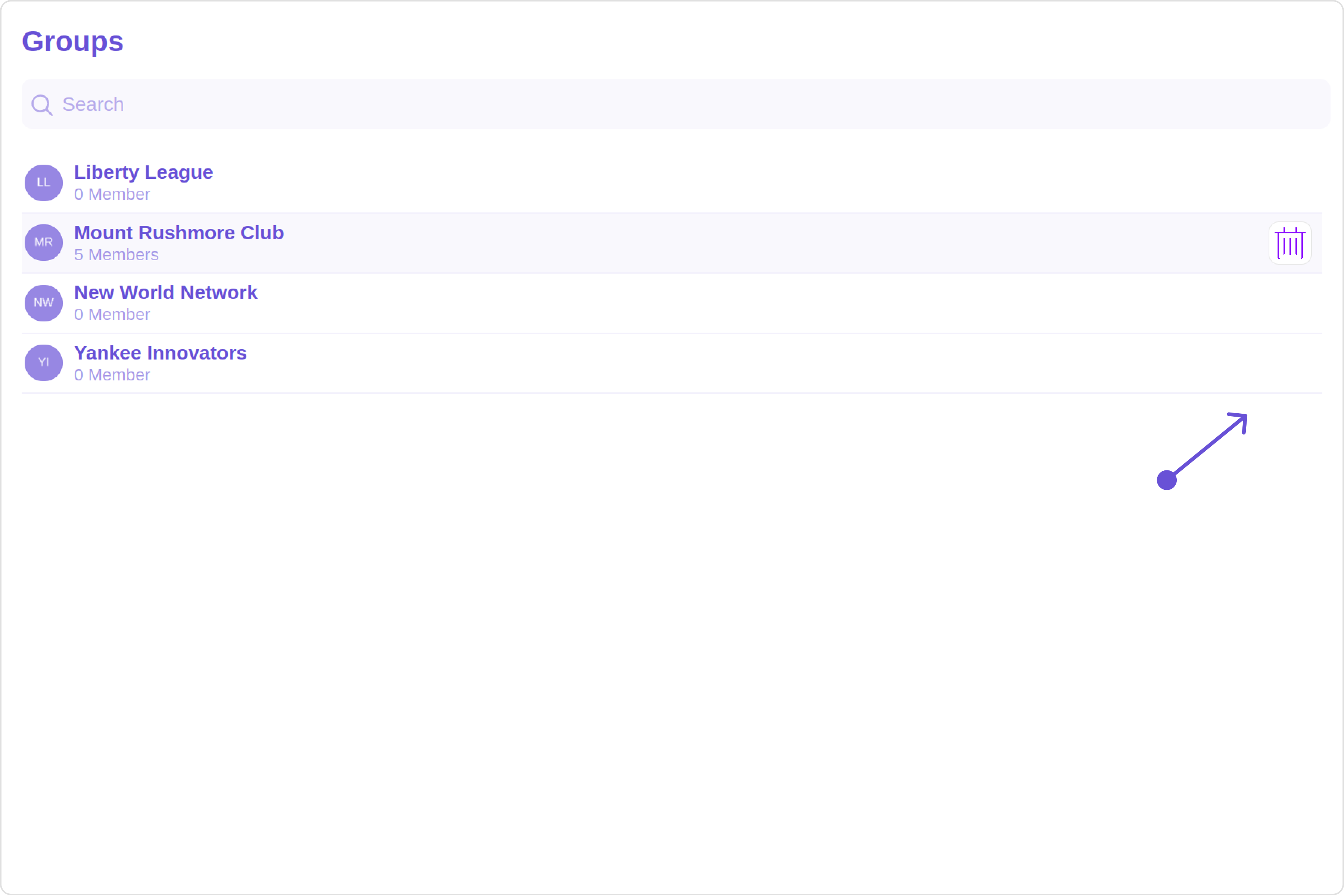 The Groups is a Component, showcasing an accessible list of all available groups. It provides an integral search functionality, allowing you to locate any specific groups swiftly and easily. For each group listed, the group name is displayed by default, in conjunction with the group icon when available. Additionally, it provides a useful feature by displaying the number of members in each group as a subtitle, offering valuable context about group size and activity level.