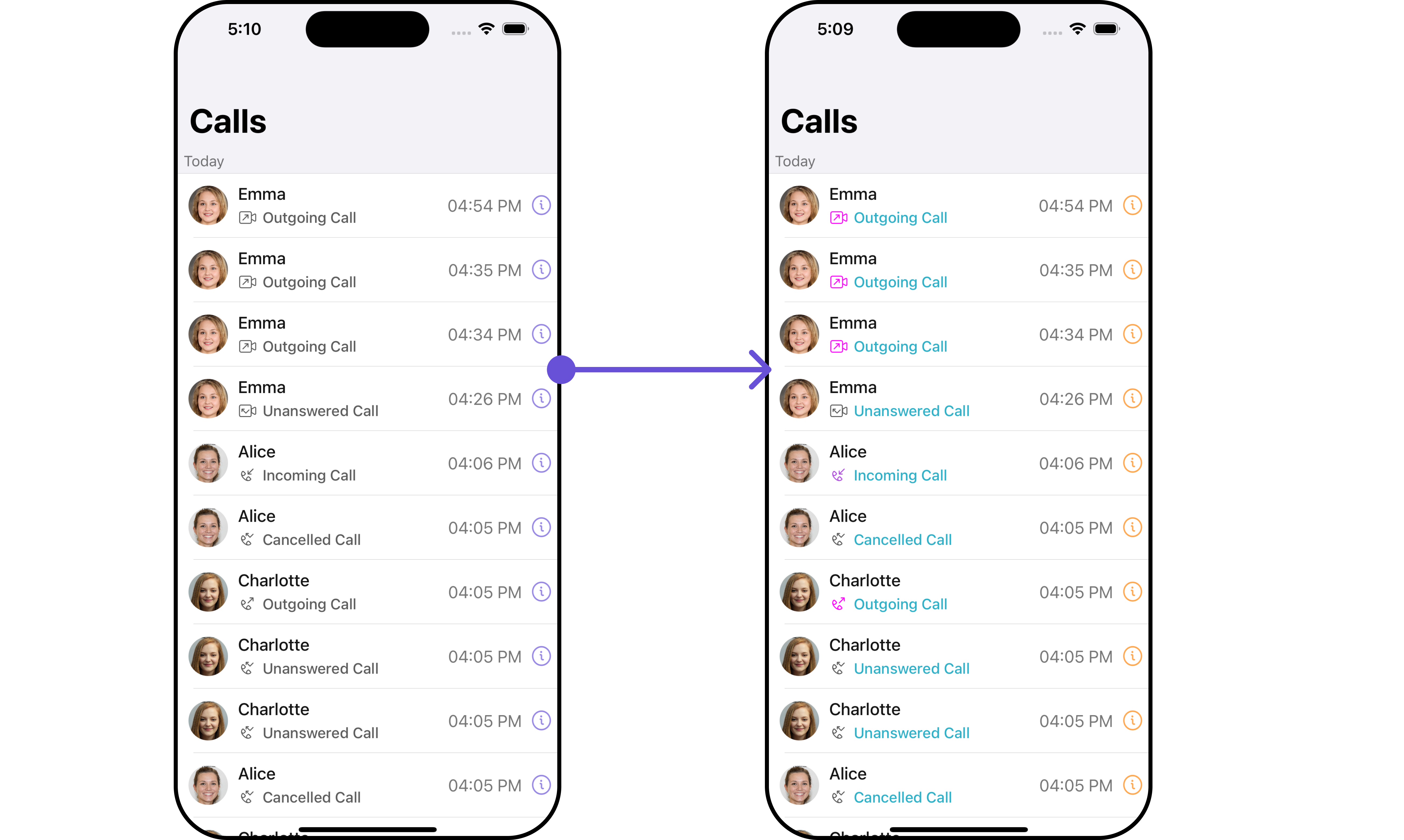 | missedCallIconTint | Sets the missed call icon tint | .set(missedCallIconTint: UIColor) |
