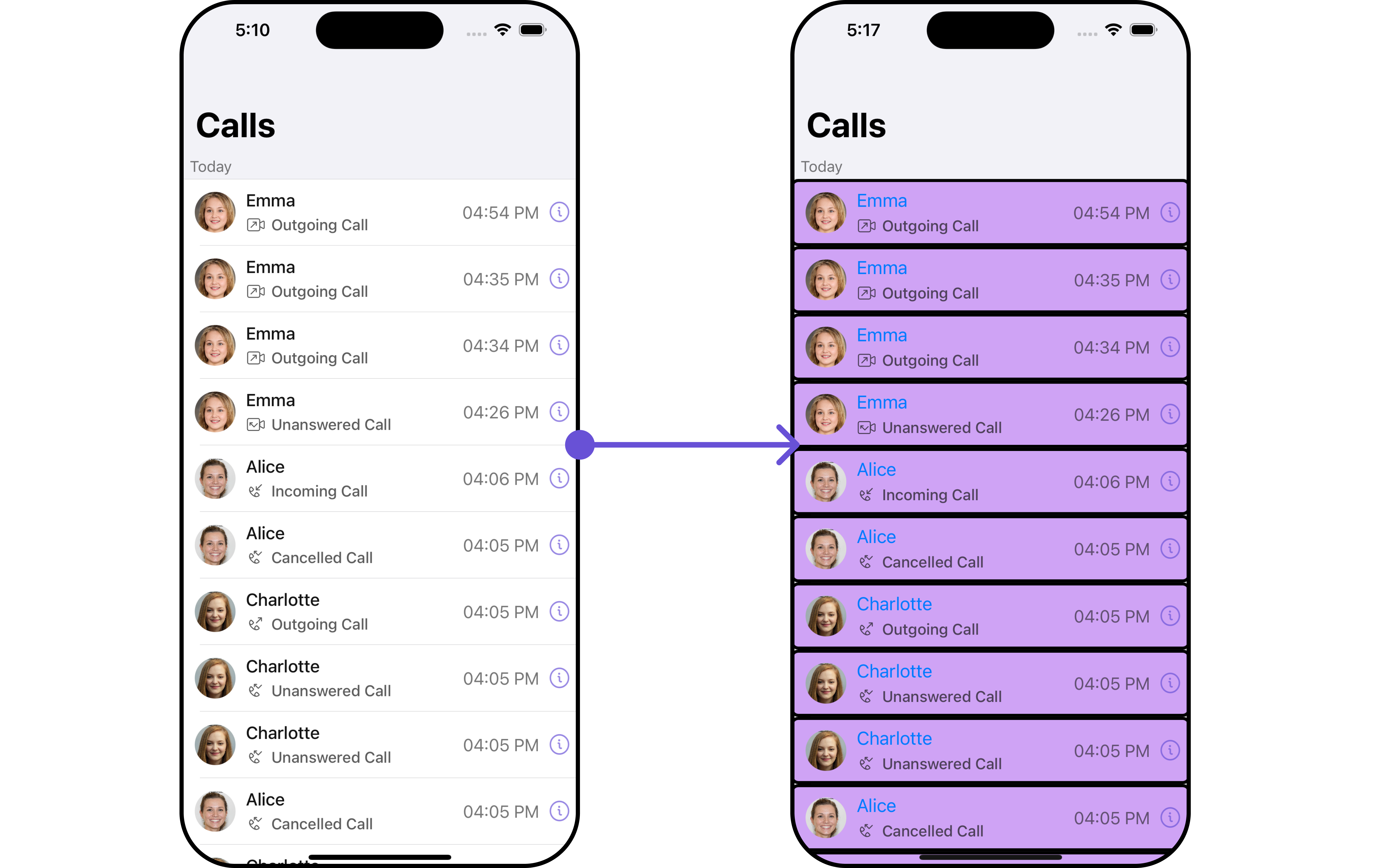 To apply customized styles to theListItemStyle component in the CallLogs Component, you can use the following code snippet. For further insights on ListItemStyle Styles refer